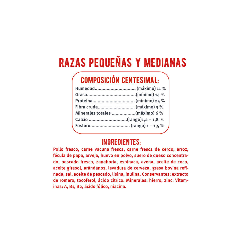Mon Ami para Perros Adultos Pequeños y Medianos incluye ingredientes de calidad de consumo humano como carnes frescas. Aporta todos los nutrientes esenciales para que tu mascota tenga un vida saludable y llena de energía. Las croquetas están diseñadas especialmente para la mordida de perros pequeños/medianos. Este balanceado respresenta una solución en nutrición completa.